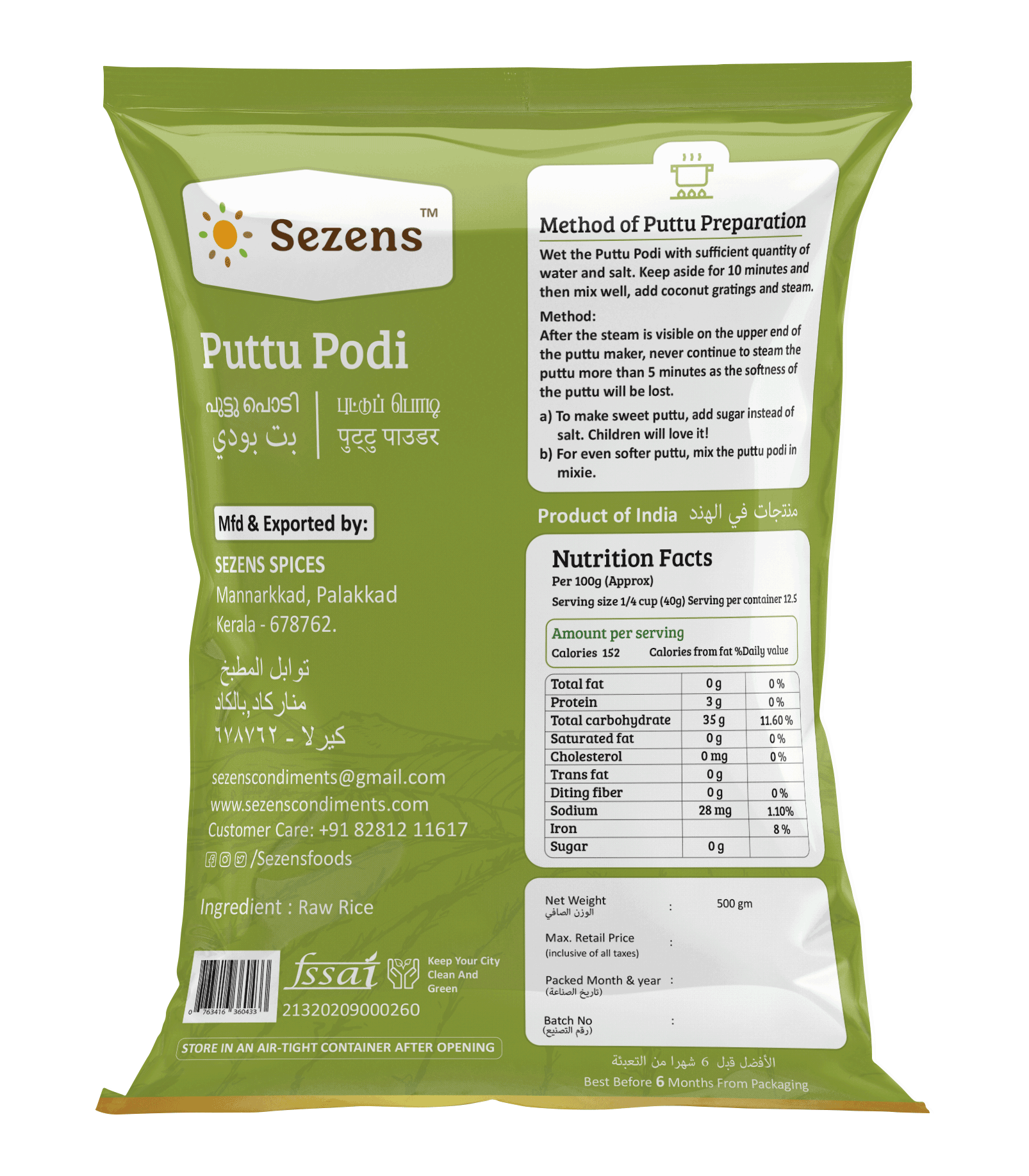Wet the Puttu Podi with sufficient quantity of water and salt. Keep aside for 10 minutes and then mix well, add coconut gratings and steam. Method: After the steam is visible on the upper end of the puttu maker, never continue to steam the puttu more than 5 minutes as the softness of the puttu will be lost.
